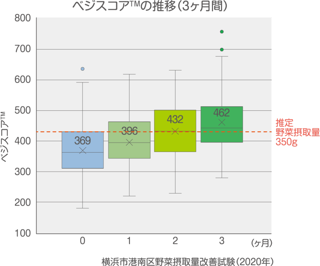 ベジメータの効果 ⽉1回の測定と簡単な⾷育だけで、約8割改善